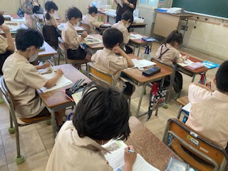 説明文の学習に入りました。言葉の意味を国語辞典で調べたり、初めの感想を書いたりしました。