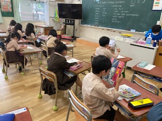 知っているいろいろな植物について話し合いをした後、種の観察をして、カードに描きました。