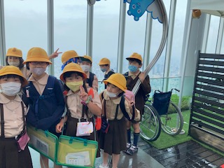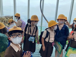 景色を見ながら少しゆっくりしました。再び60階に戻り、エレベーターに乗りました。