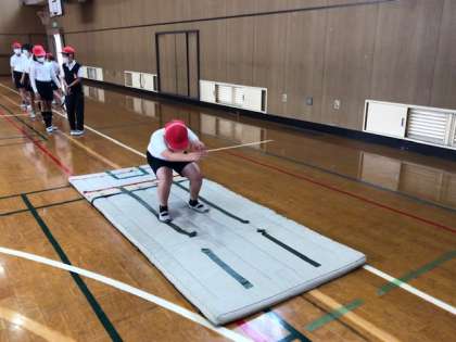 明日の体力テストに向けて、シャトルランや立ち幅跳びの練習をしました。