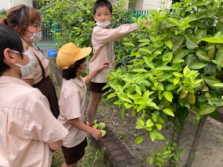 アゲハチョウの幼虫を見つけました。「3年生に教えてあげよう!」と話していました。昨年の理科の学習を思い出したようです。