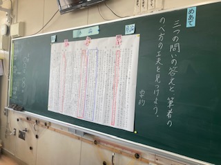 本論の三つの問いとその答えを見つけていきました。また筆者の述べ方の工夫なども一緒に探しました。