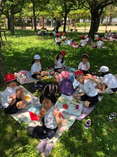 いっぱい遊んだ後にみんなで食べたお弁当は、とても美味しかったです。