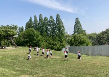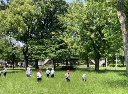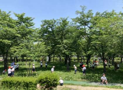 小学校に入学してからはじめての校外学習は、歩いて城北公園に行きました。植物や生き物を見つけたり、遊具や広場で思いっきり遊んだりしました。