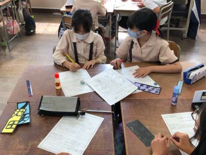 グループで自分の工夫を紹介したり、友達の作品のよいところを紹介したりしました。