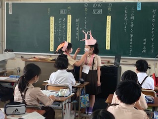 問いの答えを動作化で確かめました。教科書の言葉や文では何と表現されているのかや、なぜ筆者は実験を2回しているのかも確認できました。そして筆者の述べ方の工夫に気づきました。