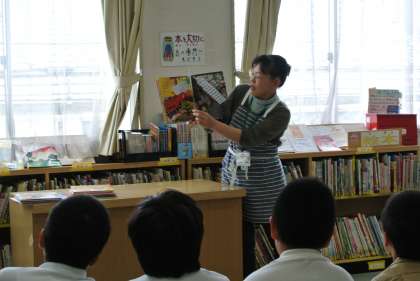 学校図書館ボランティアさんによる読み聞かせがありました。使った絵本はポップアップ絵本でページをめくり、中から飛び出す仕掛けが出てくるたびに子どもたちは大喜びでした。一人で読む絵本もいいですが、みんなで楽しさを共有できる読み聞かせも楽しいですね。