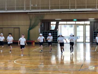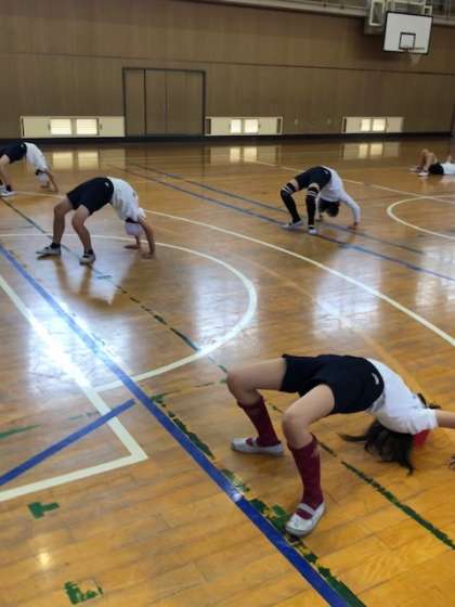 準備運動にブリッジを取り入れていました。4年のときから練習しているのでほとんどの子どもが10秒キープできました。