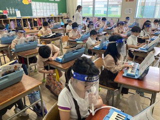 鍵盤ハーモニカの運指を練習しました。上手になってきました。「かえるのがっしょう」も指つかいに気をつけて演奏することができました。