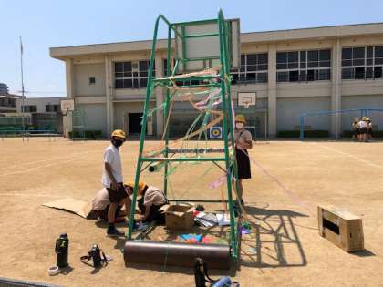 図工の時間を2時間とってグループで、さまざまな道具を使って飾り付けをしました。