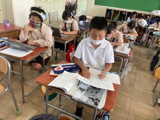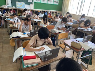 「ヤドカリとイソギンチャク」で学んだ「筆者の説明の技」などを使って共生する生き物について調べ、まとめています。