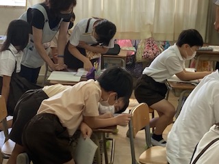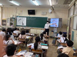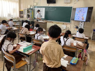 大阪市の工場の分布と働く人の数を記した図を見て、気づいたことをペアで話し合い、交流しました。