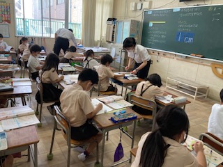 昨日までの学習では、テープを使ったり、自分の消しゴムいくつ分という測り方をしていました。それは不具合があるさり、共通の測り方があると便利だということに気づきました。メモリがついていて、一めもりを1cmとすることを確認しました。