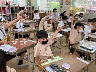 昨日までの学習を活かして、10の合成分解について学習しました。ブロックを使って確かめた後、数字カードでも、確かめゲームをしました。