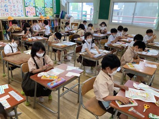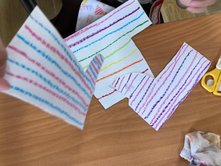 線をたくさん引いて飾りにし、帽子や靴下を作りました。