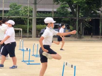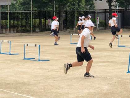 ハードル走のまとめをしました。自分に合う歩幅で、タイムを測定しました。
