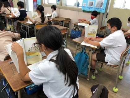 時の経過や登場人物の変化に気をつけながら、自分で場面分けについて考えていきました。なぜそこで分けたのか、根拠を示しながら説明する子どもの姿がみられました。