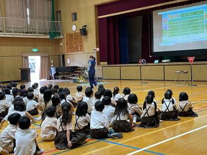 旭警察の方に来ていただき、安全な歩行の仕方や自転車の乗り方などを教わりました。