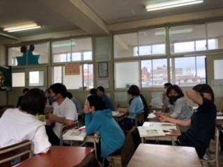昨日、研究授業の後、研究討議会を行いました。教育委員会指導部のM指導主事先生、学力向上担当指導員のF先生にご指導いただきました。