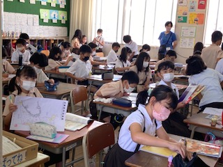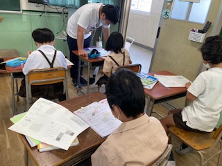記録を表やグラフを使って整理していきます。、また、グラフや表の見方も復習し、プリントなどの問題にも挑戦しました。