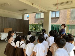 小さな生き物の命について学習した後、ピロティにあるツバメの巣を見にいきました。