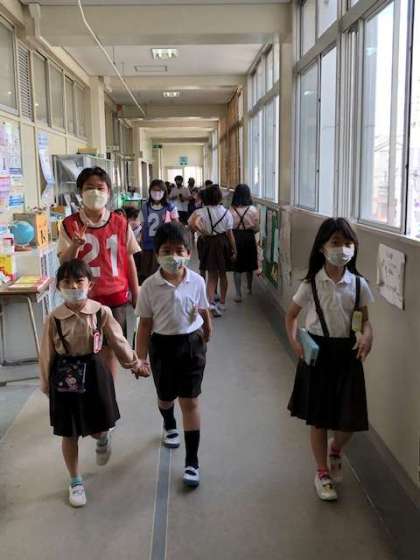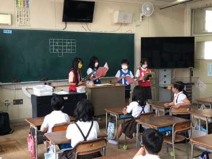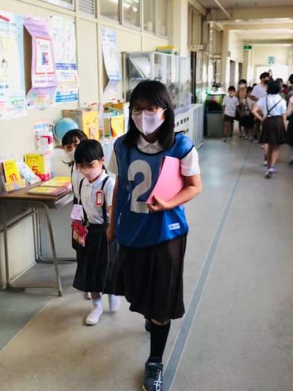 ビブスを着た各グループのリーダーが1年生を教室まで迎えに行き、みんなで自己紹介をしました。早くメンバーの顔をしっかり覚えて、朝の児童集会でも楽しく活動できるようにしていきましょう。