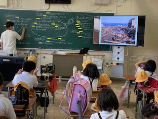 地震や津波が起きたらどう行動するか、考えました。気づいたことをワークシートにまとめました。、おうちの人と一緒に考えるという宿題も出ています。よろしくお願いします。