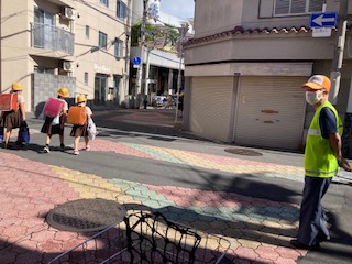 見守り隊の方を始め、教職員が角に立って児童の安全を見守りました。