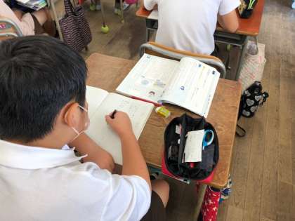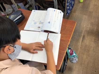 今日は、教科書の例文を読んで気づいたことをノートに書き、交流していきました。