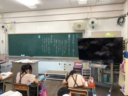 「環境問題について報告しよう」の学習はクラスを分割して少人数で進めています。