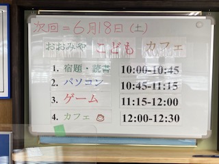 大宮子どもカフェは、大宮地域活動協議会が運営されています。子ども達が、気軽に立ち寄り、おしゃべりをしたり勉強をしたり、ゲームもできます。毎月一回の予定で開かれています。今月は、18日の土曜日、10時からです。