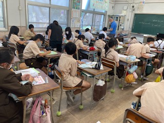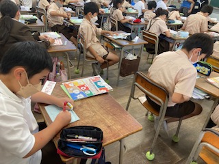 誕生日に欲しいものは何か聞聞き合った後、ペアの相手にバースデーカードを書きました。