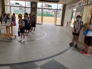 8時の玄関の様子です。これよりもっと早く登校する児童もいて、危ないなあと感じています。8時10分から25分の間に着くようにしたいですね。