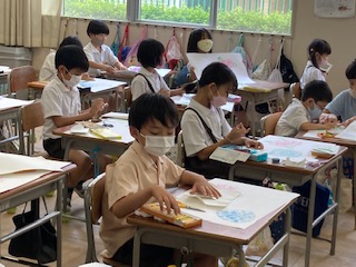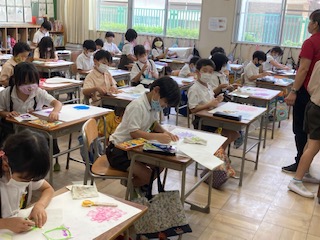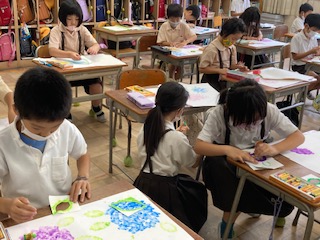 アジサイを描いています。教室にきれいな花がたくさん咲きました!