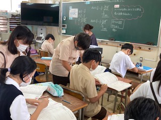 何倍かを求めるときの計算の仕方や、割合を分数でまとめる方法などについて考えました。解けた子からどんどん練習や発展問題に挑戦しました。