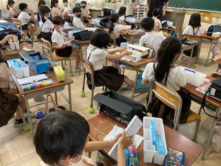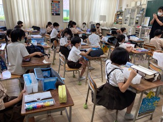 もうすぐ絵の具を使います。今日は、絵の具セットの中身の確認をしました。早く絵の具を使ってみたいですね。