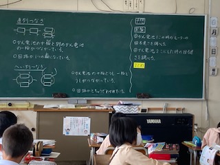 電池の直列と並列の繋ぎ方の違いを学習しました。そして、どちらの繋ぎ方の方が、モーターが良く回るか、予想を立てて実験をしてみました。