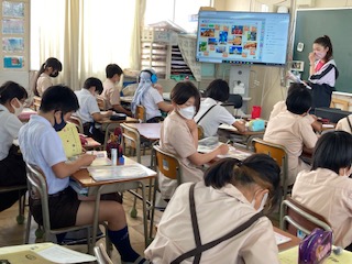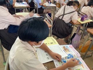 外国の食べ物などの紹介文を聴き取り、何と言っていたか、言葉を確認したり、写真で確かめたりしました。