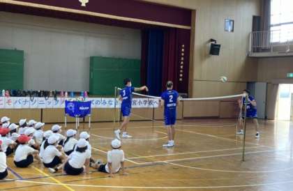 男子バレーのパナソニックパンサーズの選手が大宮小学校に来校され、2年生に「夢・授業」をしていただきました。アタックをしたり、ゲームをしたり、子どもたちは楽しそうに体を動かしていました。これからも本物に触れる教育を進めていきます。