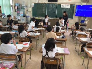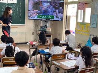 やまあらしの身の守り方を読み取り、動作方で表現したあと、最後に動画で実際の身の守り方を見ました。