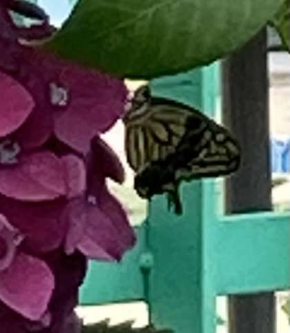 ビオトープのアジサイの裏にアゲハ蝶がじっとしていました!
