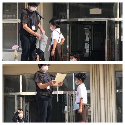 また、5月に行われた空手の大阪府の大会で、学年の部一位と三位に入賞した二人に表彰状を渡しました。