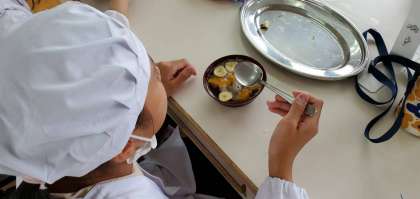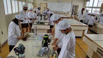 1学期最終活動日は、暑くても簡単に作れて食べやすいフルーツポンチを作りました。感染症対策のため、一人分づつ分けられた材料を各自で調理しました。家庭での夏の手作りおやつとしてチャレンジできそうです。
