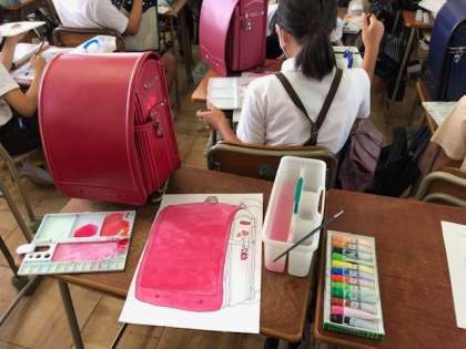 わたしのランドセルをテーマによく見ながら混色して、ちょんちょん塗りを意識しながら描き進めています。
