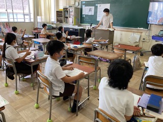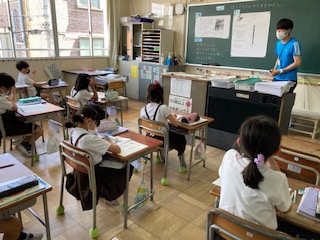 学校の前の道路を通る乗り物の数を調べた結果の表をもとに、それを棒グラフに表しました。棒グラフの書き方について確認しながら書きました。なぜ棒グラフにすると良いのかも考えました。