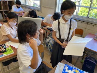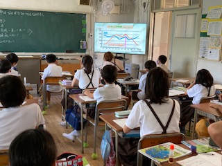庄内平野でなぜ米作りがさかんになったのか、まず自分で予想し、ペアや学級全体で交流しました。日本海に面しているから水が多い。涼しい気候が米作りに適しているから、など他にも理科で学習した発芽の条件なども思い出して考えました。その後、動画を視聴して、答えを見つけました。意外なこともわかり、次への学習課題が見つかりました。