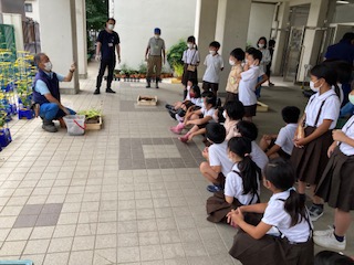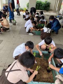 子ども達は、たくさんの発見があり、「綺麗な花を咲かせて、城北公園に飾りたい」など感想を述べました。株は、ビオトープに置いて、観察をしていきます。