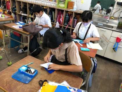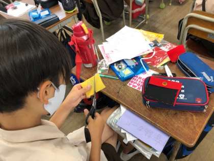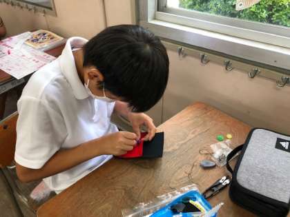 自分のイニシャルを縫い付けたりアイロンでアップリケを付けたりしてオリジナルの作品が並んでいます。