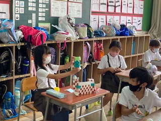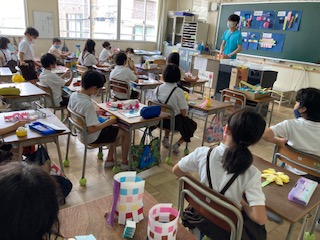 色画用紙を折ったり切ったり、丸めたりして動物など好きなものを表現しました。友達の作品で良いなあと思ったところを発表しました。