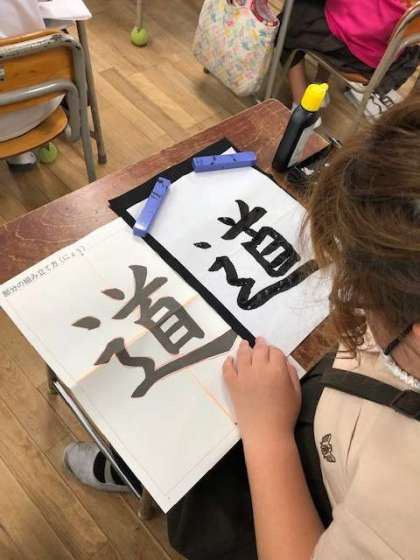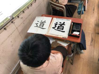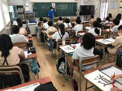 どの子どもも黙々と、集中して書いています。しんにょうのバランスが難しいですね。